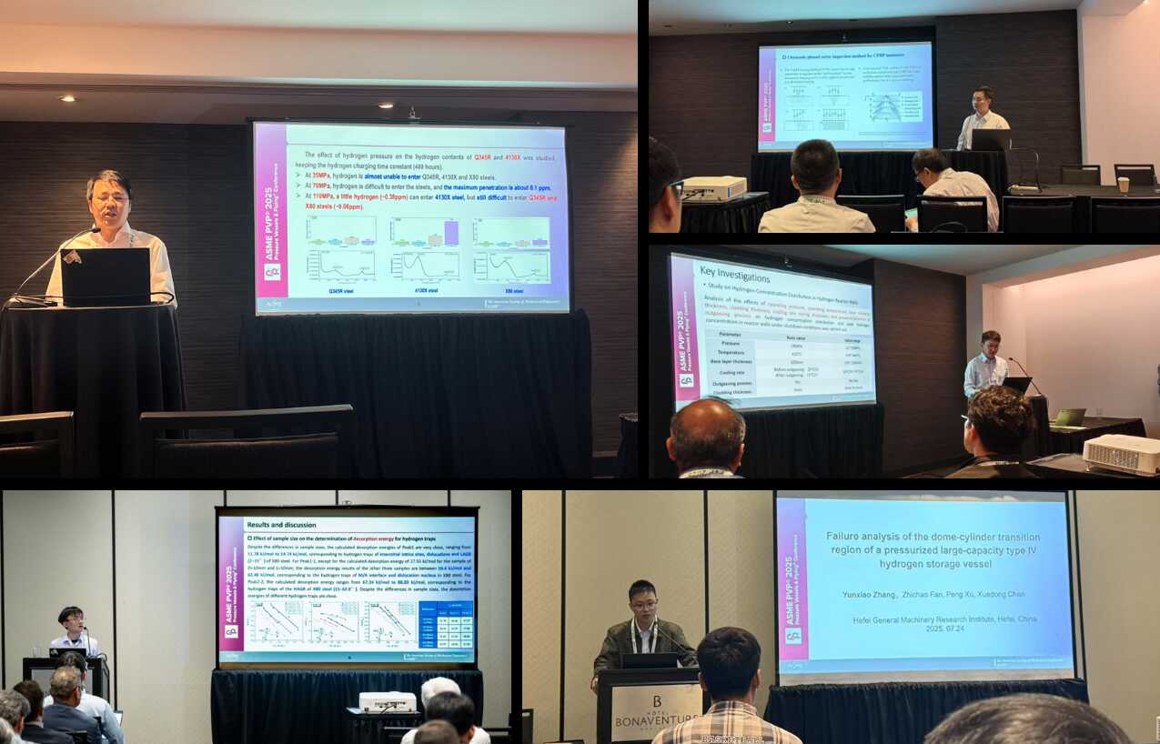 會上我院宣讀了5篇學術論文,圍繞中國壓力容器與管道常用鋼在常溫高壓氫氣環境下的力學行為研究、基于氫濃度器壁分布規律的加氫反應器最低升壓溫度曲線確定方法研究、升溫速度和樣品尺寸對X80鋼中氫的熱脫附行為影響研究、碳纖維復合材料多向板中分層缺陷的超聲相控陣快速成像方法、大容量IV型儲氫瓶的過渡區失效分析研究等主題,與ASME首席執行官Thomas Costabile先生、ASME鍋爐與壓力容器規范第VIII卷委員會主席Steven Roberts先生、ASME鍋爐與壓力容器規范第VIII卷委員會中國國際工作組聯絡員Kang Xu先生等國外代表就壓力容器標準規范的技術合作進行了交流。會議期間,陳學東院士還主持了ASME PVP中國分會場CS-10-01“中國規范與標準最新進展”。